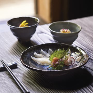 作家の手により生み出される、「無限の青。」透き通るような青が特徴の「青萩」は、作家 納富晋の代名詞ともなっています。青空のような水色から、深い海のような紺まで、青の変化が一つの器に表現され、いつまでも眺めていたくなる作品です。
