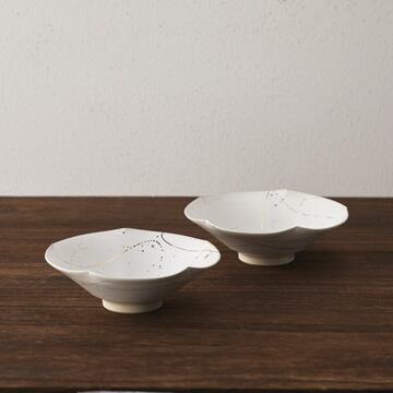 京都の職人の完全な手仕事。薄く仕上げられた美しい花形鉢。振りかけられた金とプラチナには独特の上品さと華やかさがあります。