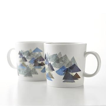 はんなり×プティ・タ・プティ京都御所のほど近くに、京町屋を利用した店舗にテキスタイルが映える「プティ・タ・プティ」。ここでは“心に残るものをひとつひとつ丁寧に”を柱に、コンセプトを大切にしたテキスタイルを提案しています。nそんなプティ・タ・プティさんの代表作「レ・モンターニュ」のイラストをあしらったペアのマグカップ。n「偶然は、遠く離れた人をも巡り合わせる」というフランスのことわざをコンセプトとした「レ・モンターニュ(山並み)」。山は動くことなくその場に在るけれど、人は一歩踏み出すことで様々な人と巡り逢い、その偶然の先には心が躍る瞬間が待っているものです。一歩を踏み出すことで出会い、これからも一緒に歩いていくふたりを象徴するようなモチーフです。