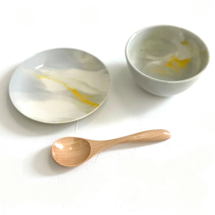 ボウル/プレート:磁器(美濃焼)/日本製、スプーン:天然木/中国製