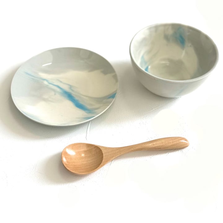 ボウル/プレート:磁器(美濃焼)/日本製、スプーン:天然木/中国製