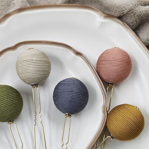 表面の凹凸感を楽しめる「江戸打ち紐」を巻き付けた大小の糸玉が、リズム感のあるヘアスタイルを演出します。