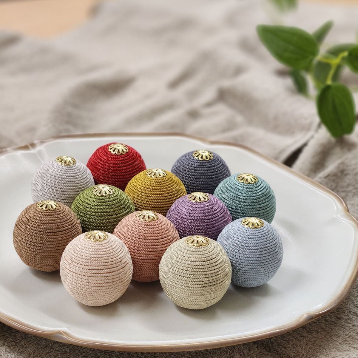 ※セット内容は単色の糸巻玉が大小1個ずつと付属のかんざし2本です。カラーは1枚目の商品画像を参照してください。複数カラーの商品画像はイメージです。