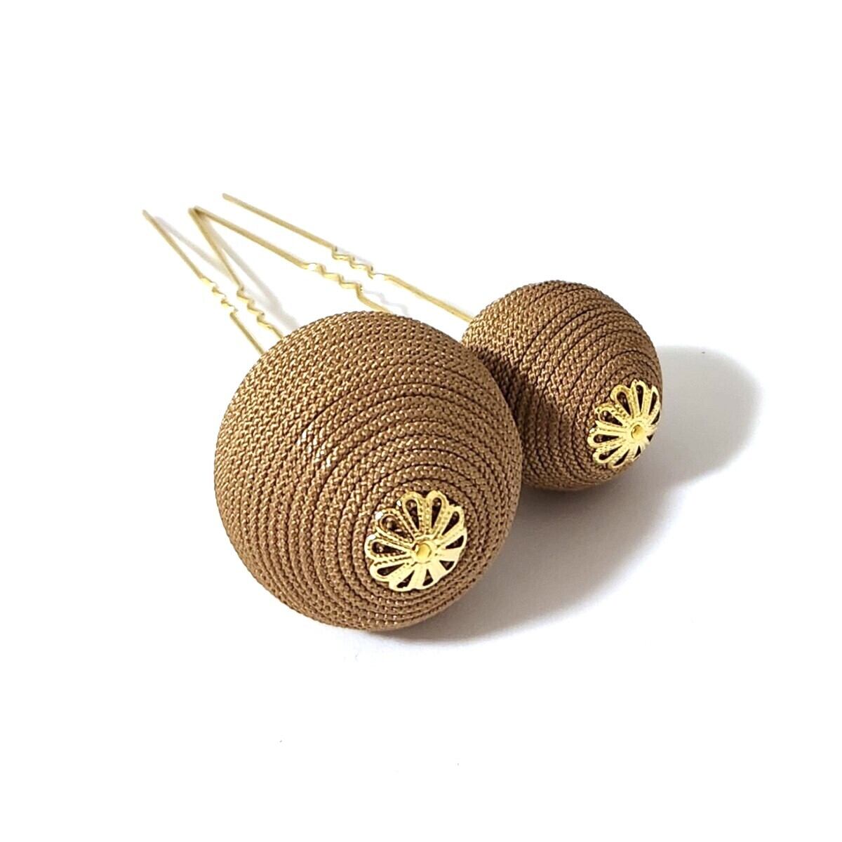 ※セット内容は単色の糸巻玉が大小1個ずつと付属のかんざし2本です。カラーは1枚目の商品画像を参照してください。複数カラーの商品画像はイメージです。