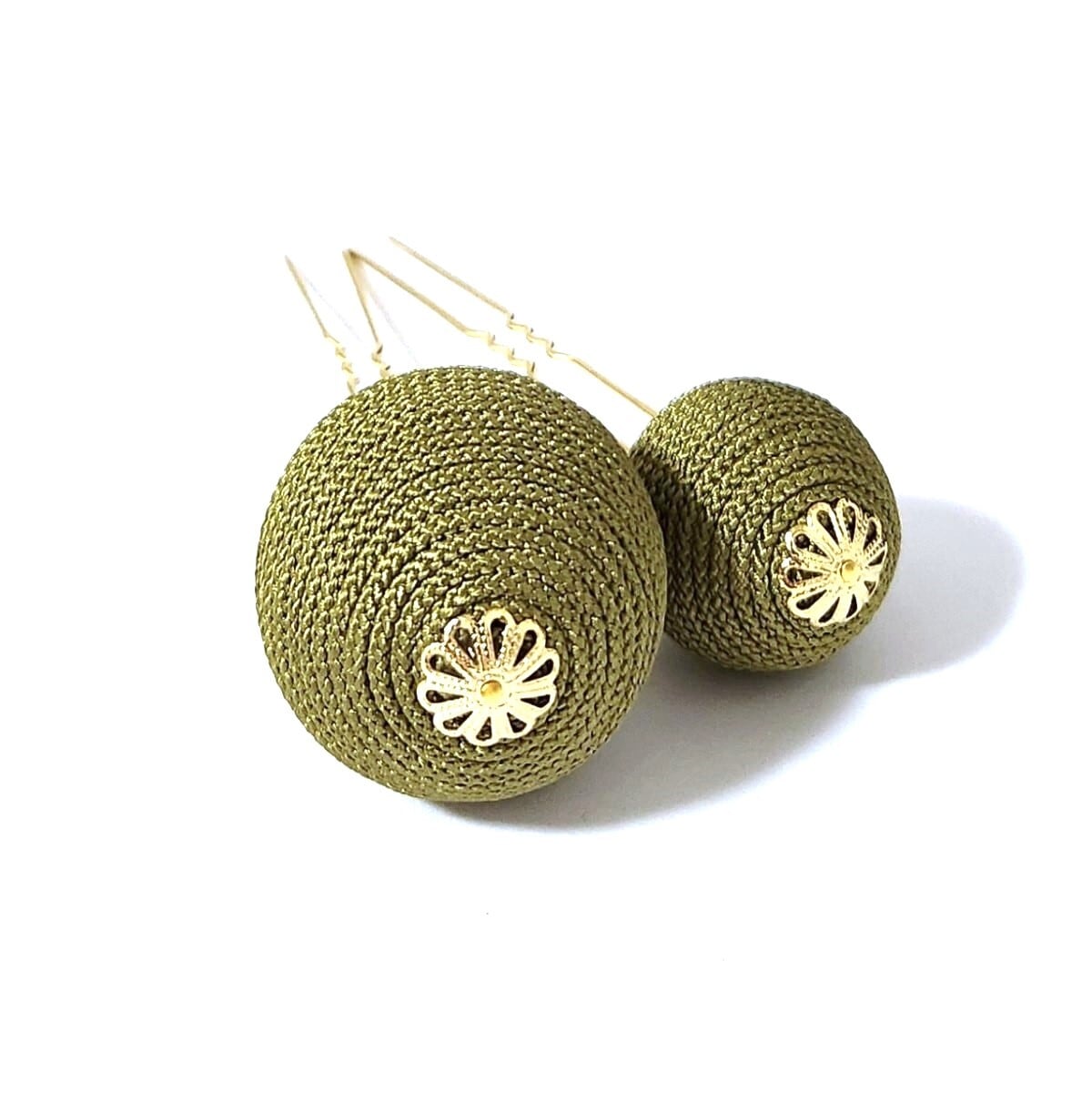 ※セット内容は単色の糸巻玉が大小1個ずつと付属のかんざし2本です。カラーは1枚目の商品画像を参照してください。複数カラーの商品画像はイメージです。